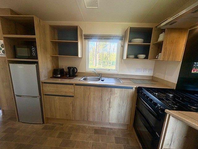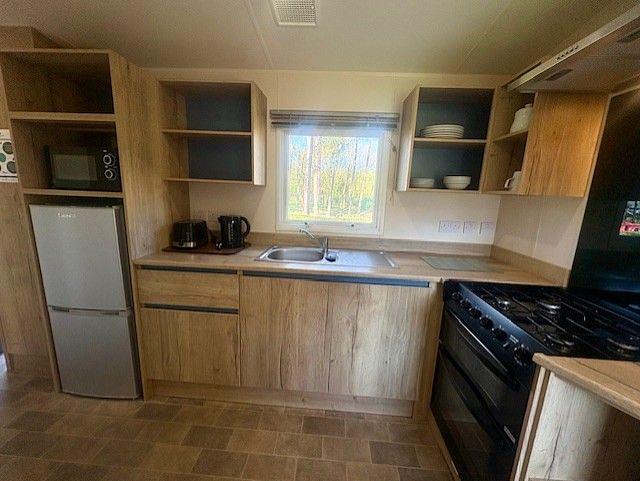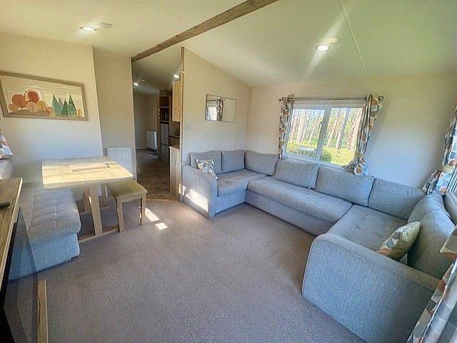 The holiday home features a spacious and welcoming living and dining area, perfect for relaxing or entertaining guests. With central heating and double glazing throughout, it’s designed for year-round comfort no matter the season.