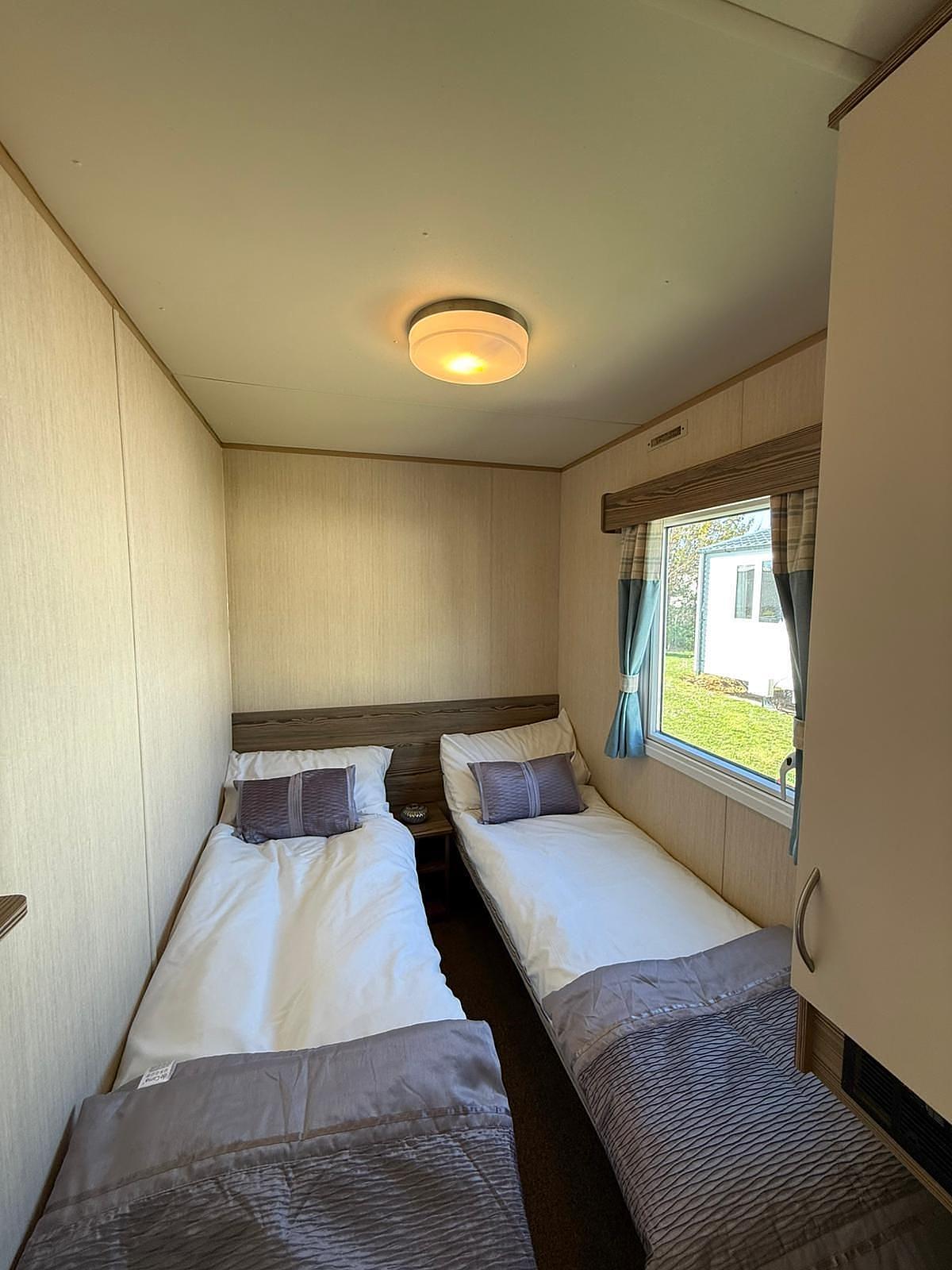 The caravan benefits from double glazing and electric blow air heating in all bedrooms, making it ideal for use throughout the season. With three well-sized bedrooms, there’s plenty of space for family and guests alike.