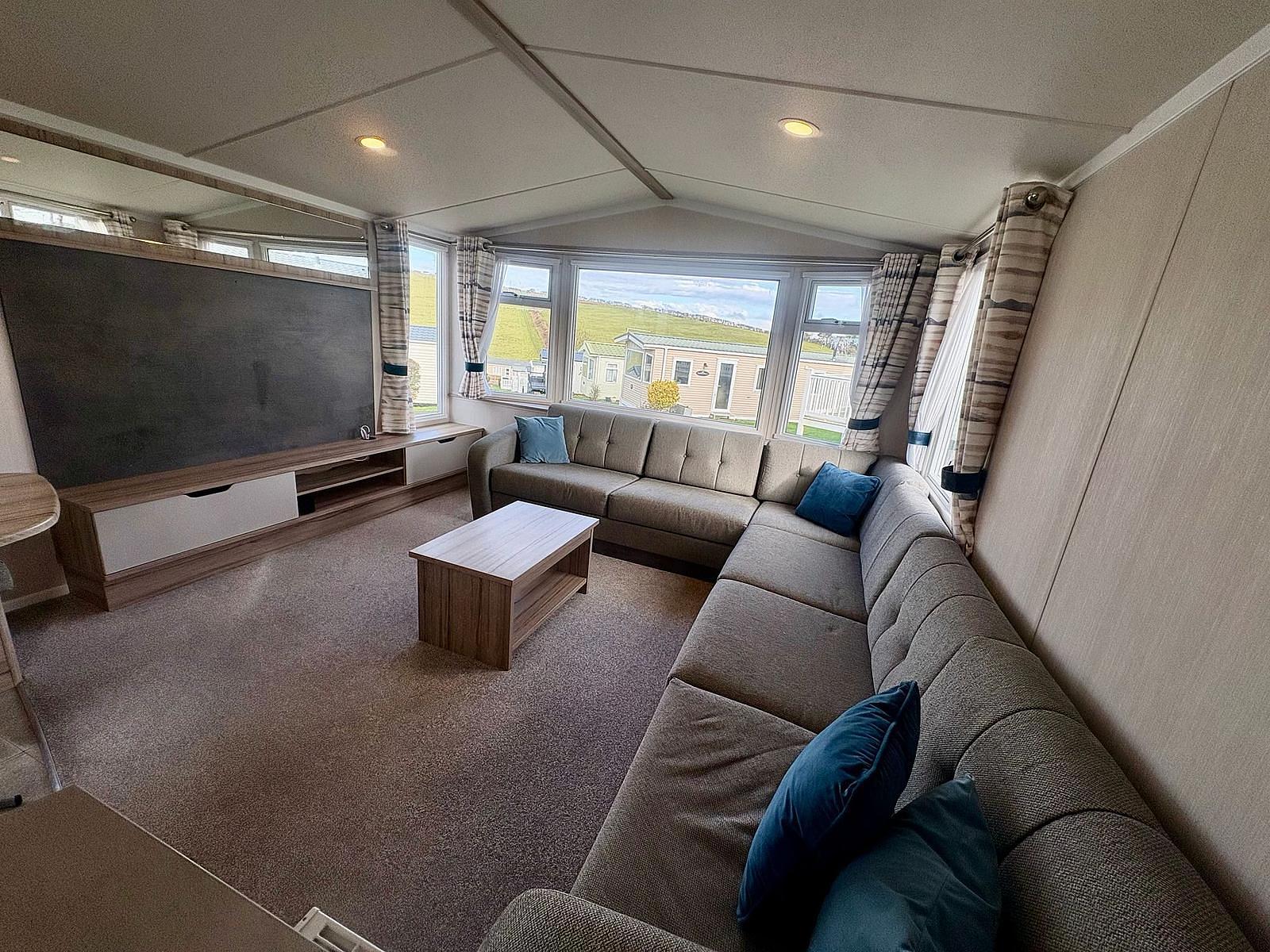 The holiday home is well presented throughout and benefits from a comfortable, practical layout. The living area is bright and welcoming, perfect for relaxing after a day exploring the local coastline. Outside, the home features a side deck, providing an ideal space for outdoor seating and enjoying the tranquil surroundings.
